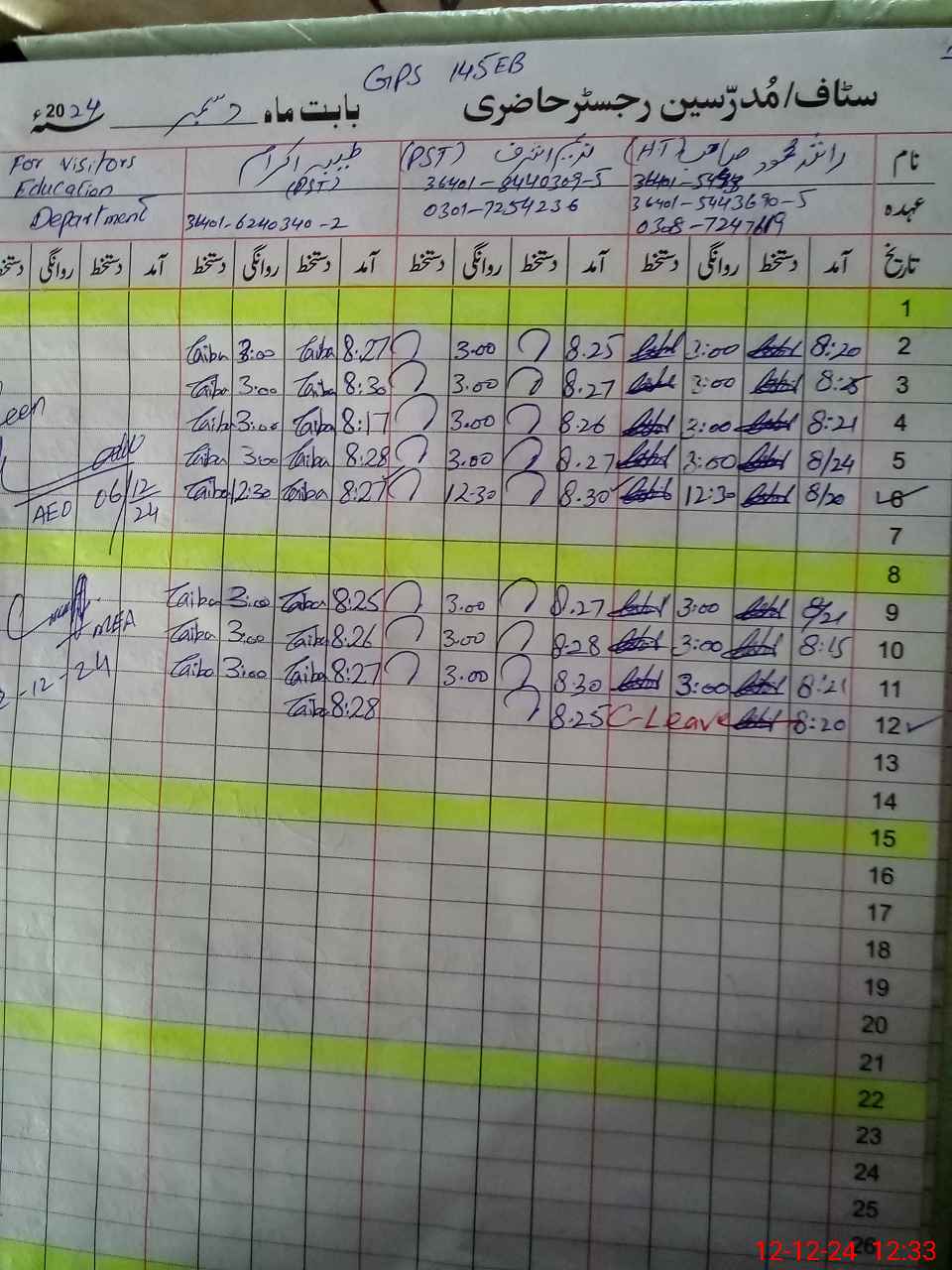| Name: RA**** MA**** Designation: (School Headmaster's/Headmistress's) PST Phone/Cell Number: 03**** |