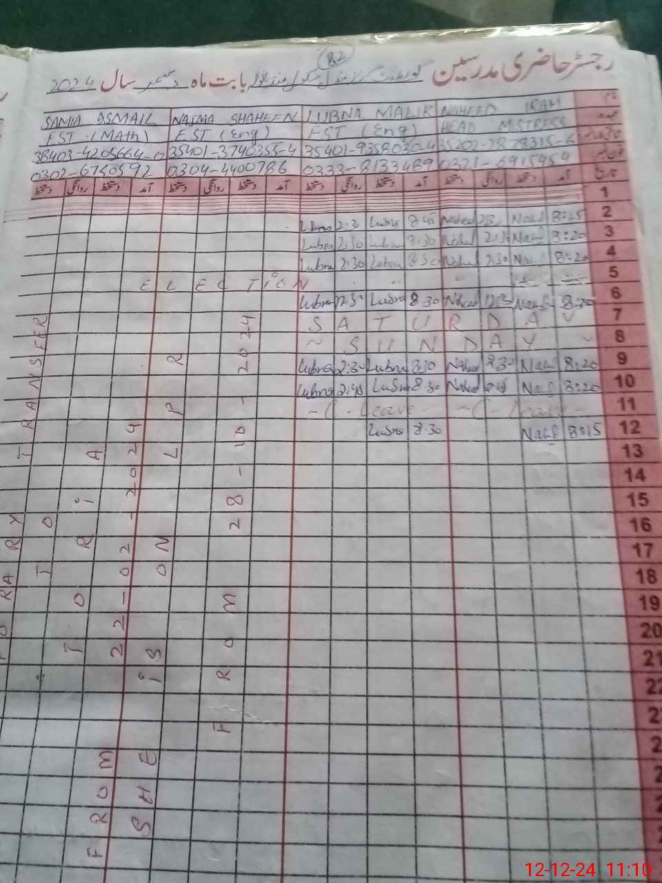 | Name: Na**** Ir**** Designation: (School Headmaster's/Headmistress's) SST Science Phone/Cell Number: 03**** |