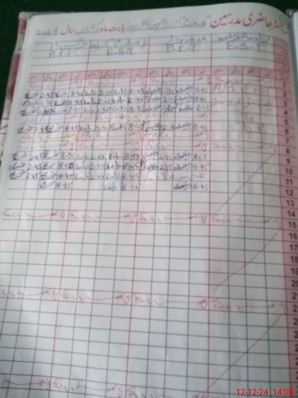 | CNIC | Full Name | Designation | R/C | Absence During Last Calender Month |