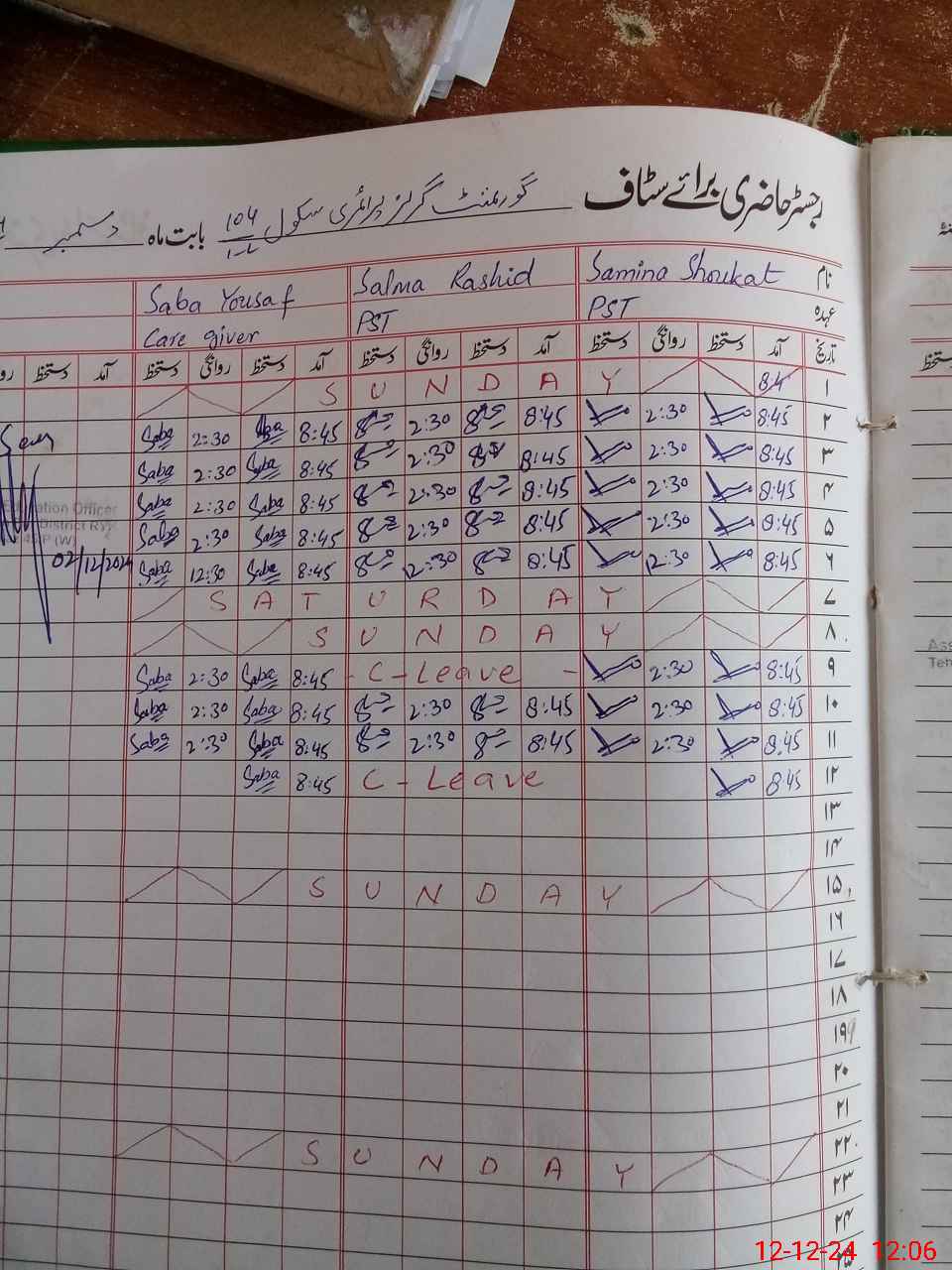 | CNIC | Full Name | Designation | R/C | Absence During Last Calender Month |