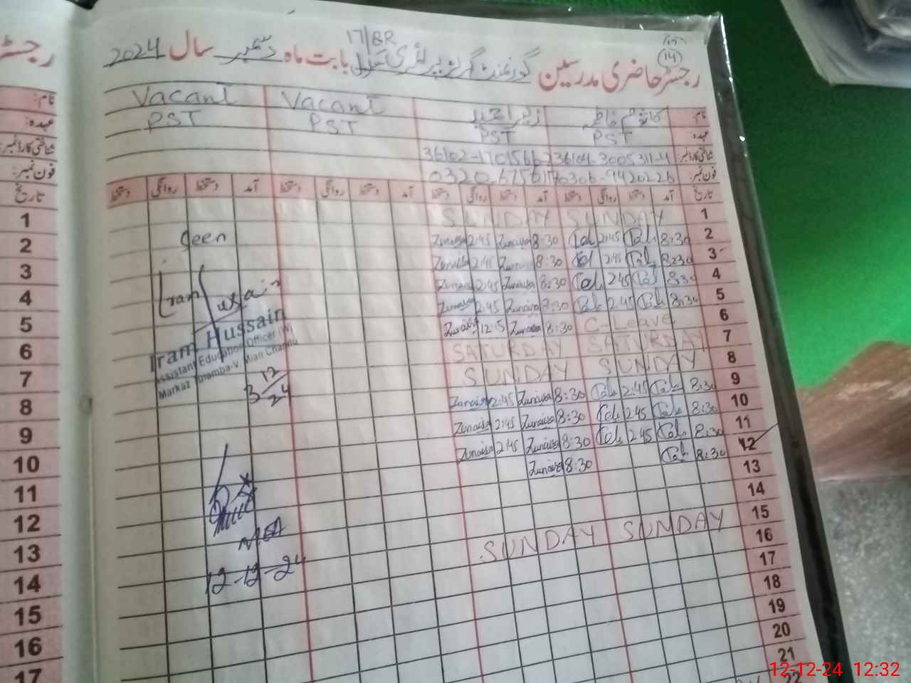 | Name: KA**** FA**** Designation: (School Headmaster's/Headmistress's) PST Phone/Cell Number: 03**** |