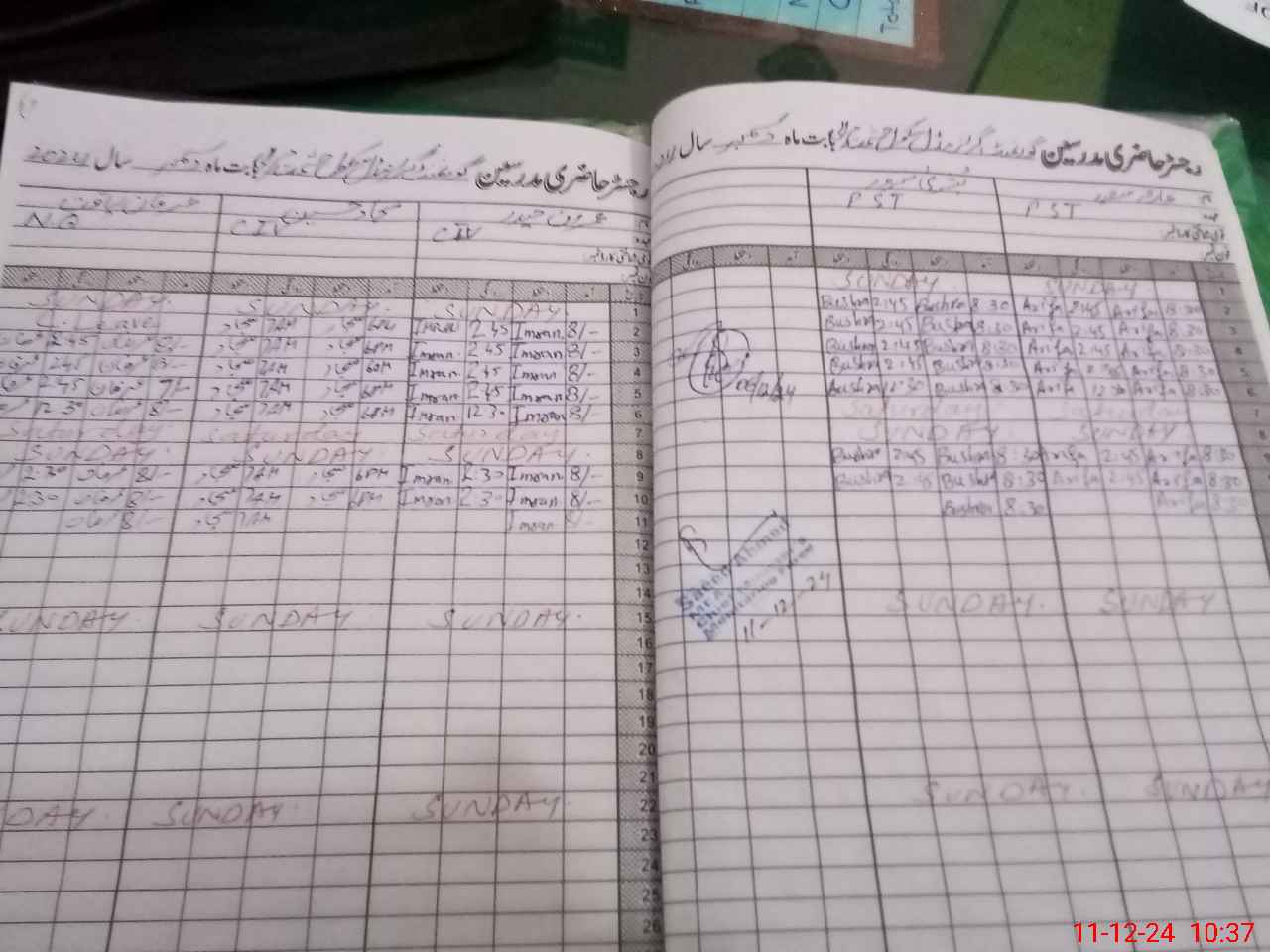 | CNIC | Full Name | Designation | R/C | Absence During Last Calender Month |