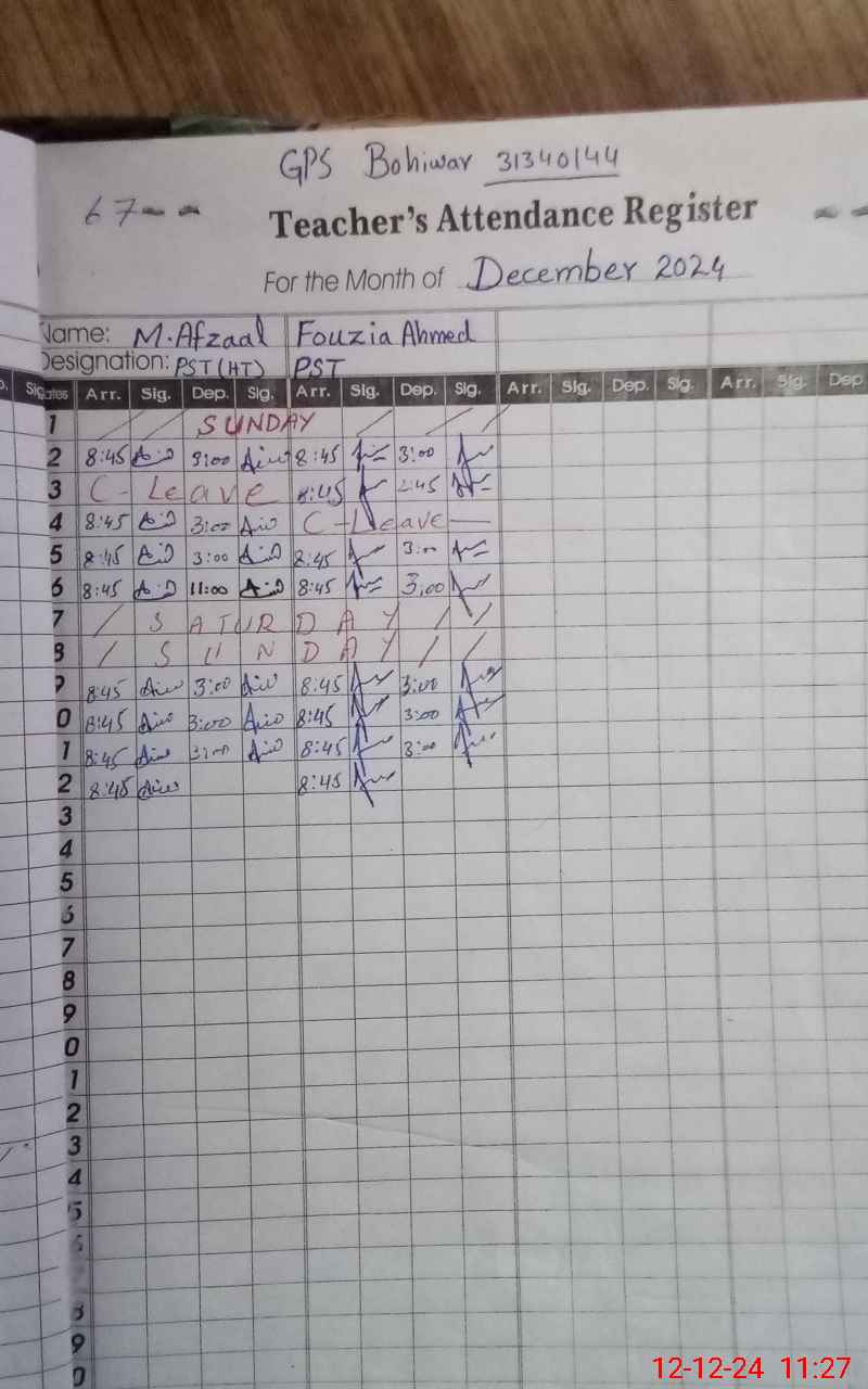 | Name: M.**** Designation: (School Headmaster's/Headmistress's) PST Phone/Cell Number: 03**** |