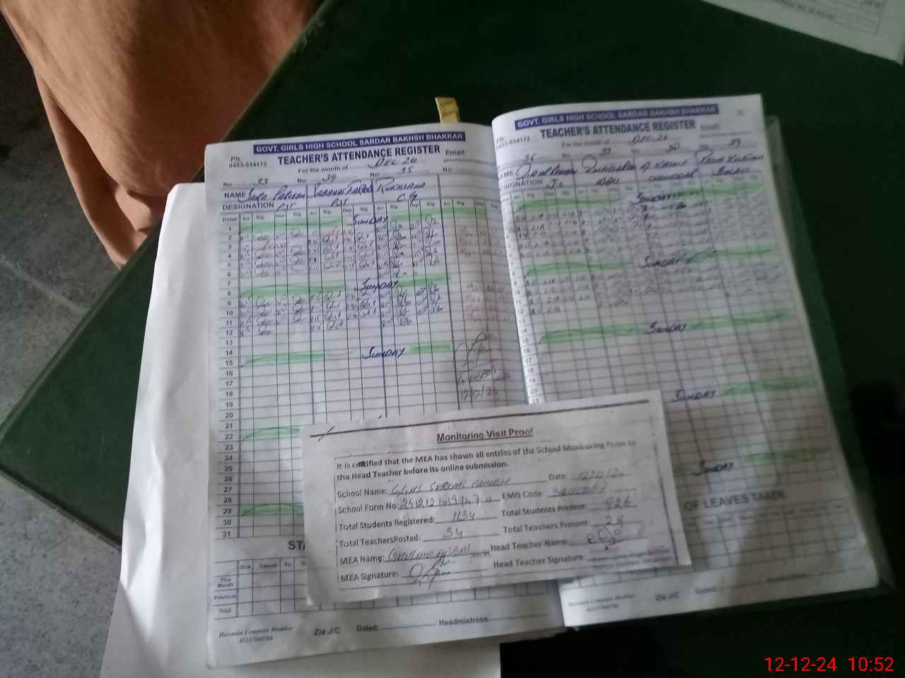 | EMIS Code: 38110067 | Name of School: GGHS SARDAR BAKHSH | |||