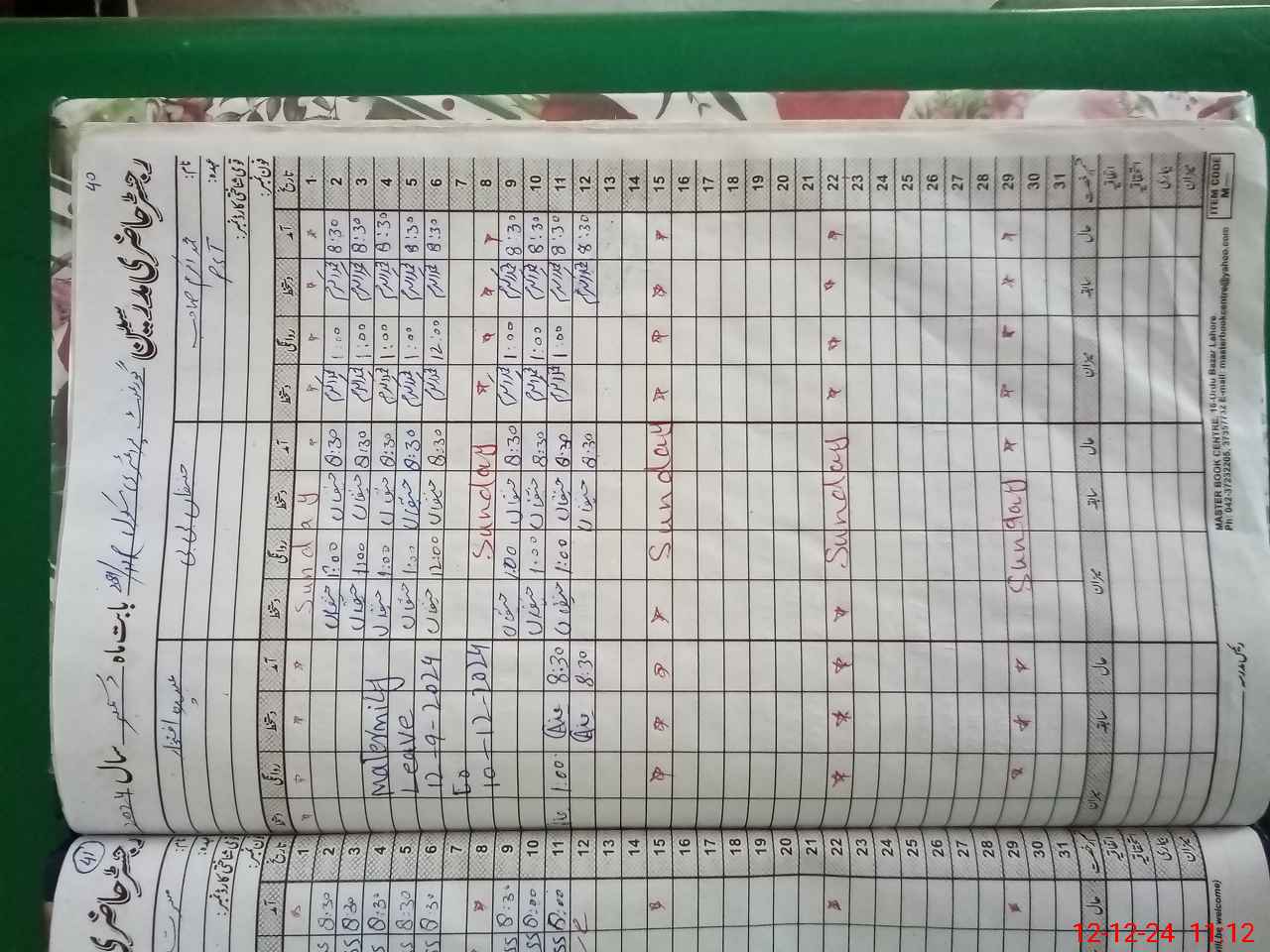 | Leave | Duty | Absent | Maternity | Medical | Ex- Pak |