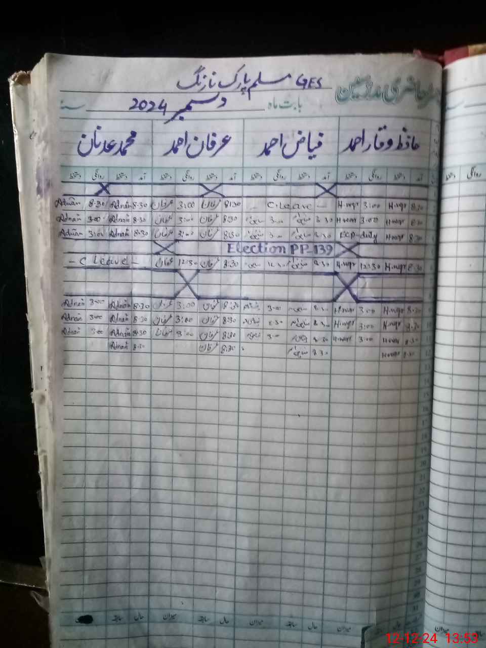 | CNIC | Full Name | Designation | R/C | Absence During Last Calender Month |