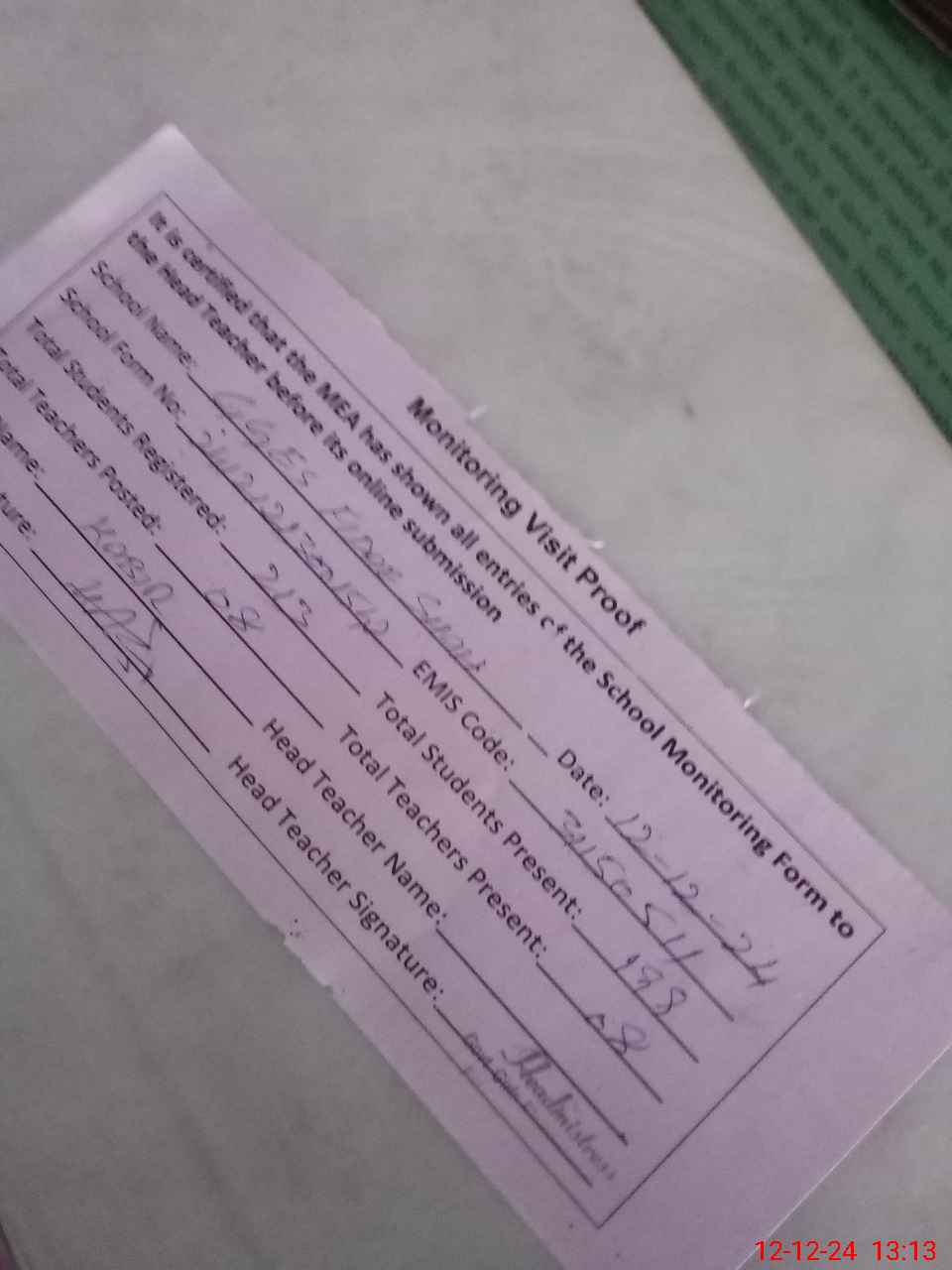 | Name: If**** Na**** Designation: (School Headmaster's/Headmistress's) SST Phone/Cell Number: 03**** |