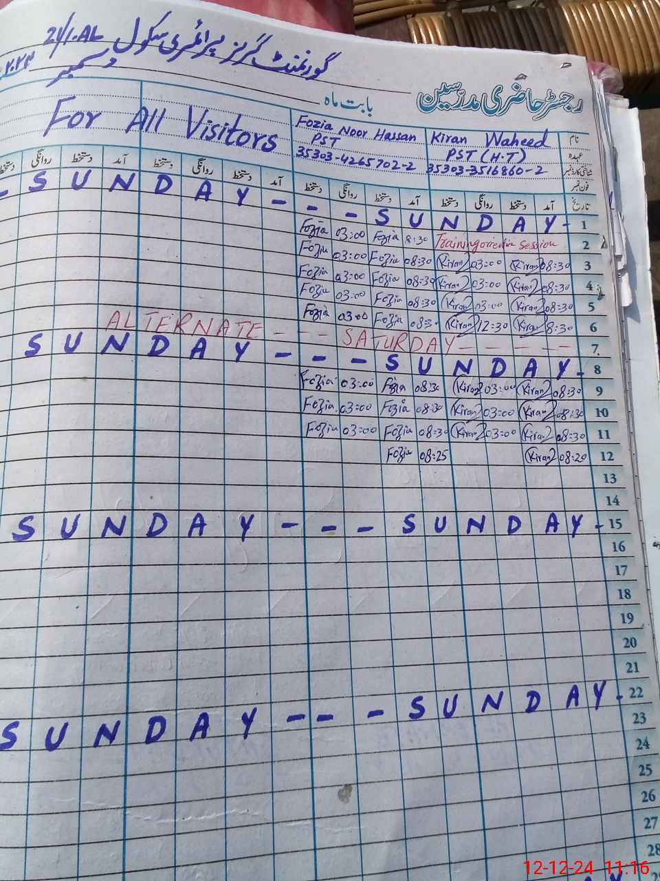 | Name: KI**** WA**** Designation: (School Headmaster's/Headmistress's) PST Phone/Cell Number: 03**** |