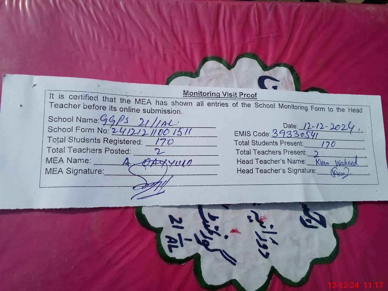 | EMIS Code: 39330541 | Name of School: GGPS 21-1AL | |||