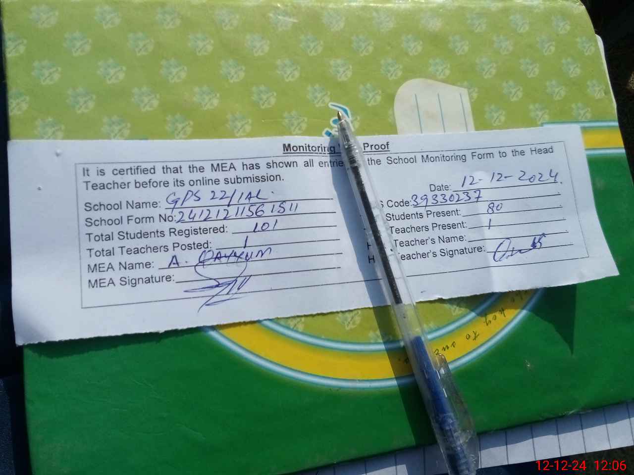 | EMIS Code: 39330237 | Name of School: GPS CHAK 22/1-AL | |||