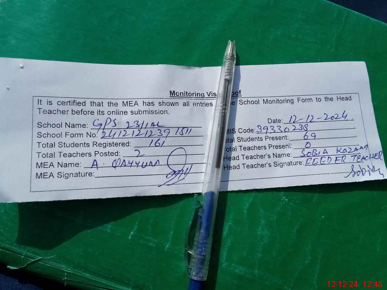 | EMIS Code: 39330238 | Name of School: GPS CHAK NO. 23/1-AL | |||