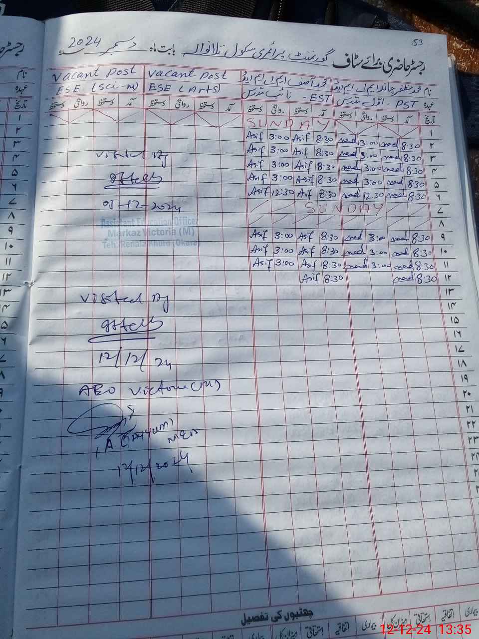 | District: OKARA | Tehsil: RENALA KHURD | Markaz: VICTORIA -MALE | Level: Primary | |