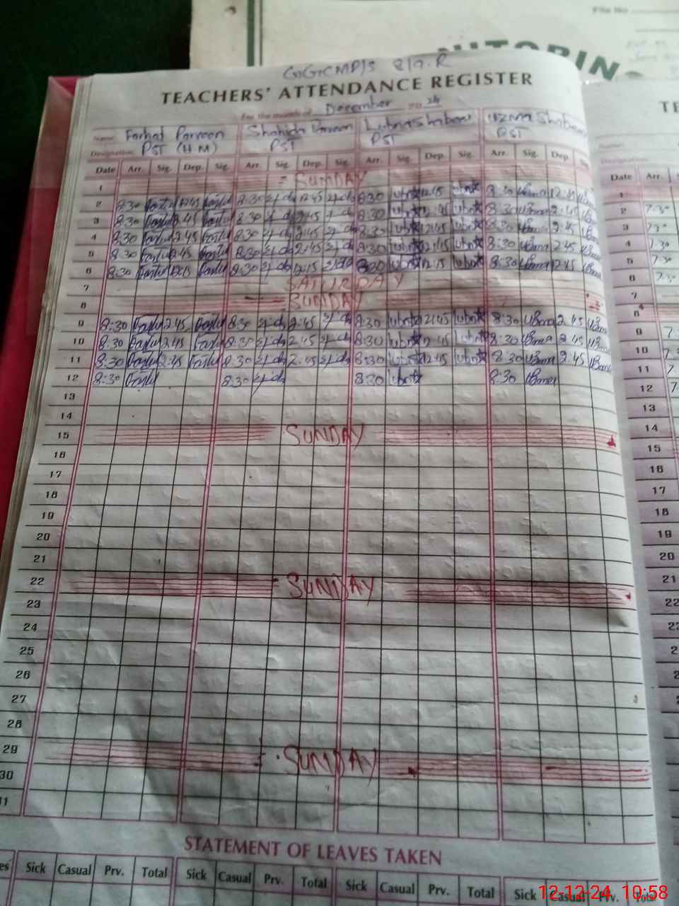 | CNIC | Full Name | Designation | R/C | Absence During Last Calender Month |