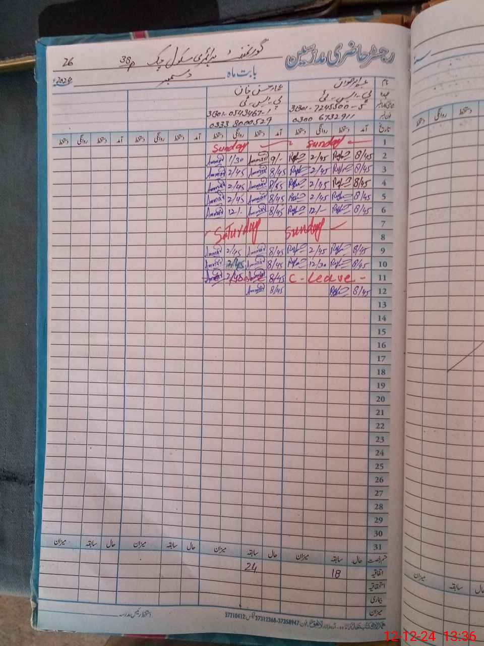 | CNIC | Full Name | Designation | R/C | Absence During Last Calender Month |