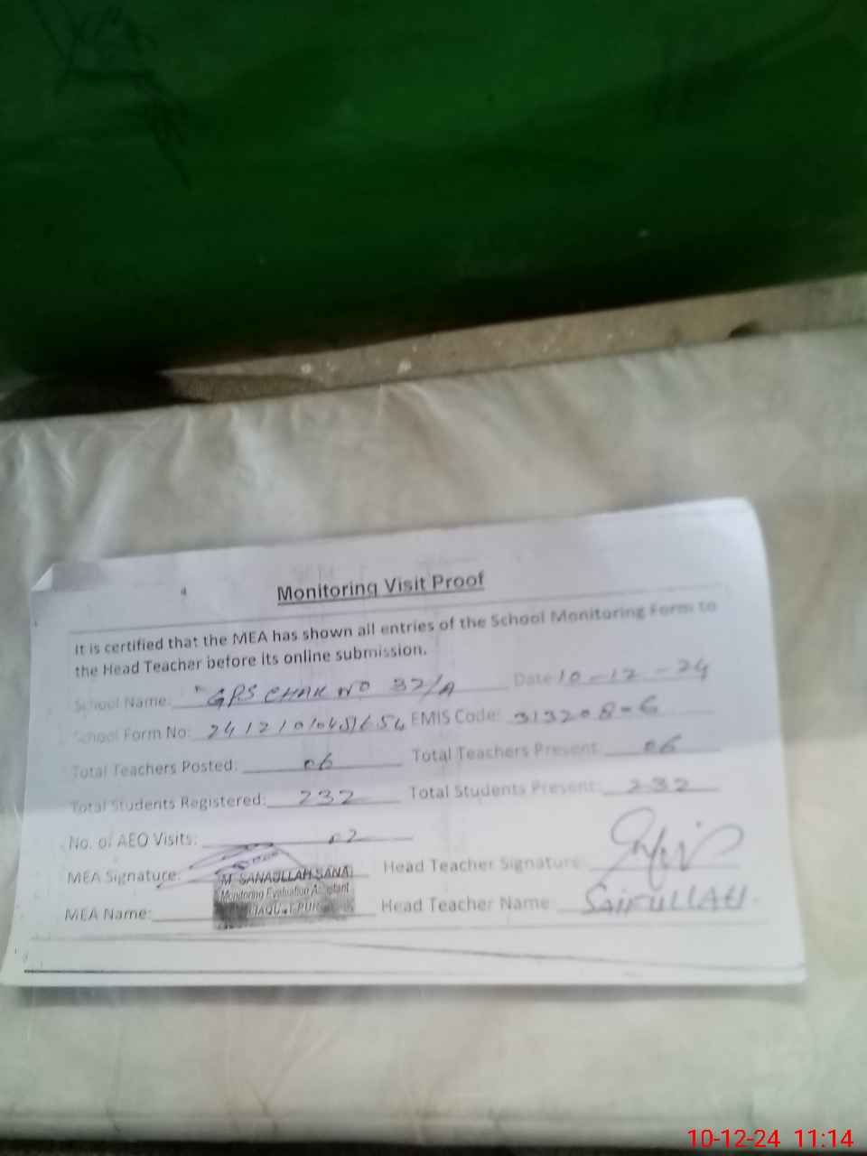| EMIS Code: 31320806 | Name of School: GPS CHAK 32/A | |||