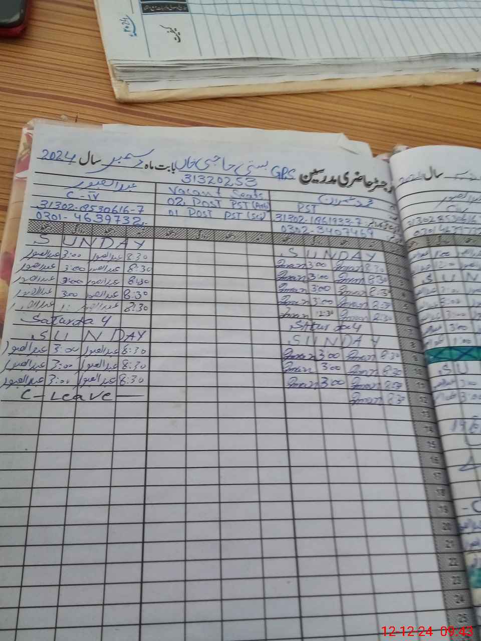 | CNIC | Full Name | Designation | R/C | Absence During Last Calender Month |