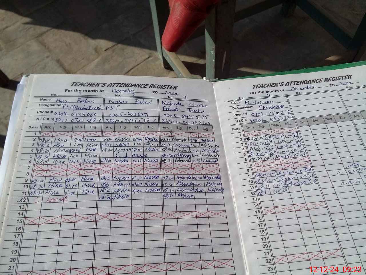| CNIC | Full Name | Designation | R/C | Absence during last cal. month |