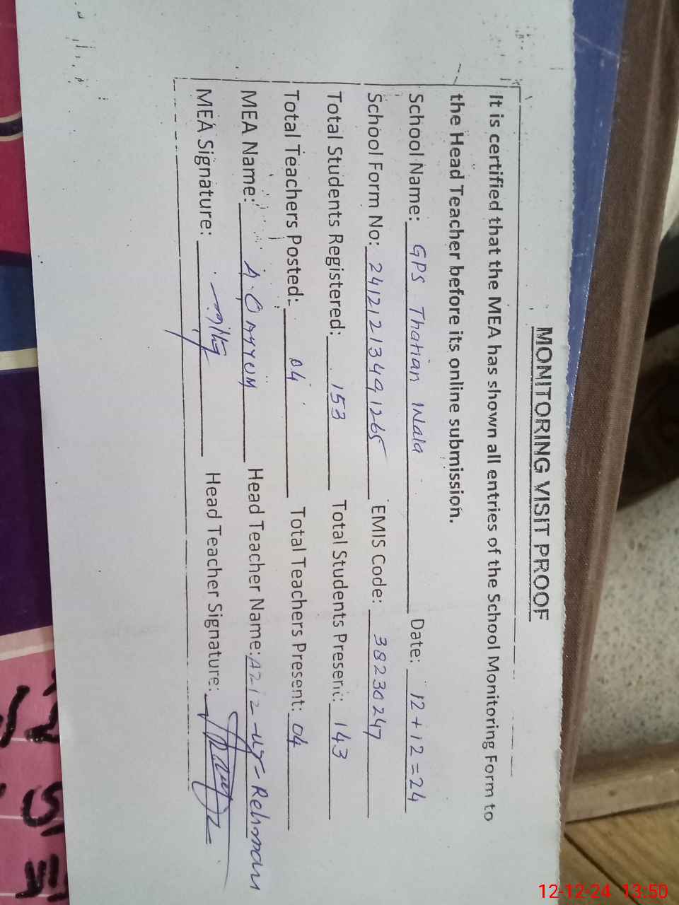 | EMIS Code: 38230247 | Name of School: GPS THAITHIAN WALA | |||