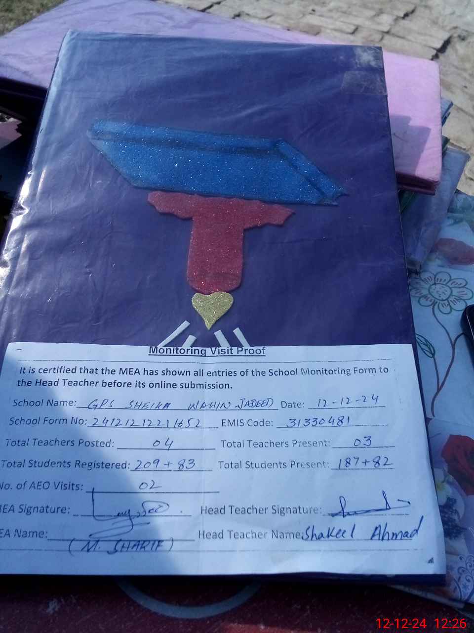 | EMIS Code: 31330481 | Name of School: GPS SHEIKH WAHIN JADEED | |||