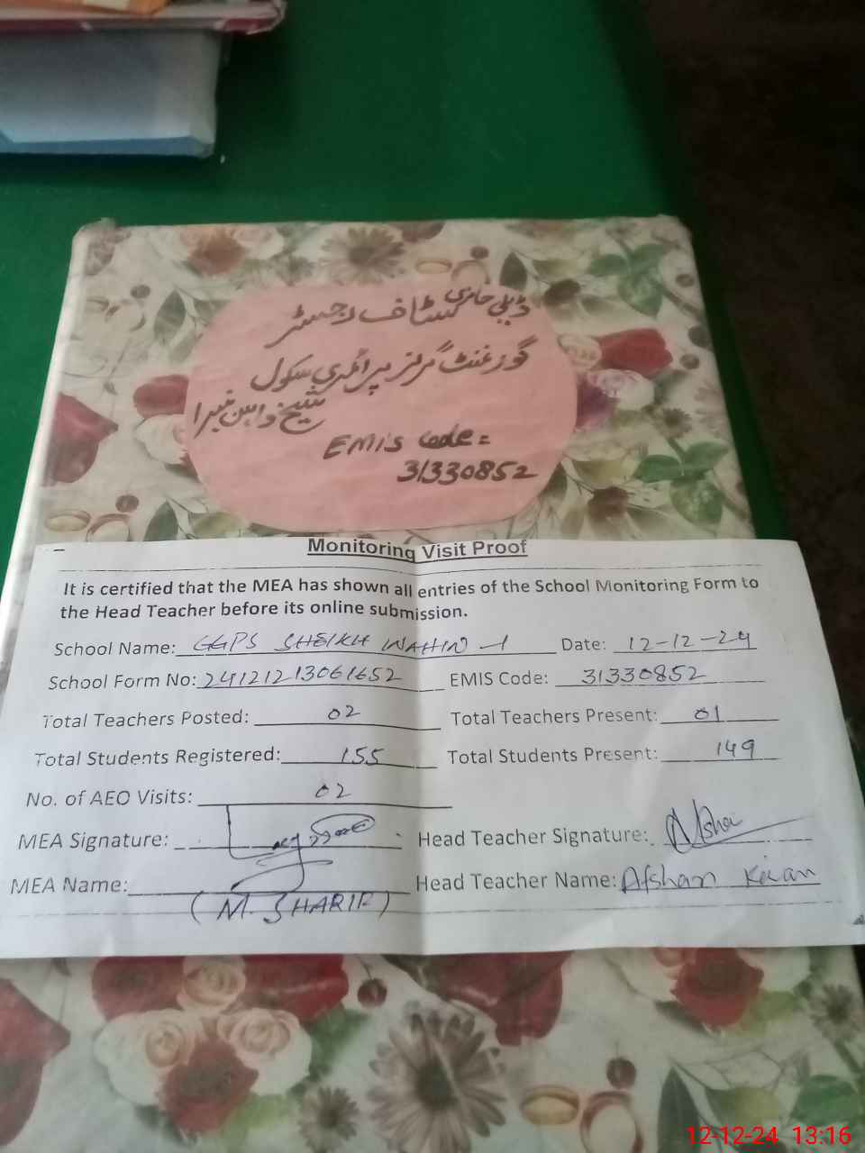 | EMIS Code: 31330852 | Name of School: GGPS SHEIKH WAHIN NO. 1 | |||