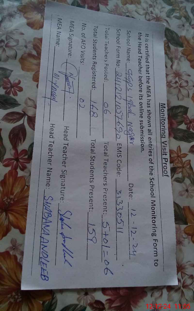 | EMIS Code: 31330511 | Name of School: GGPS IQBAL NAGAR | |||