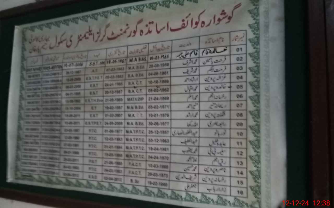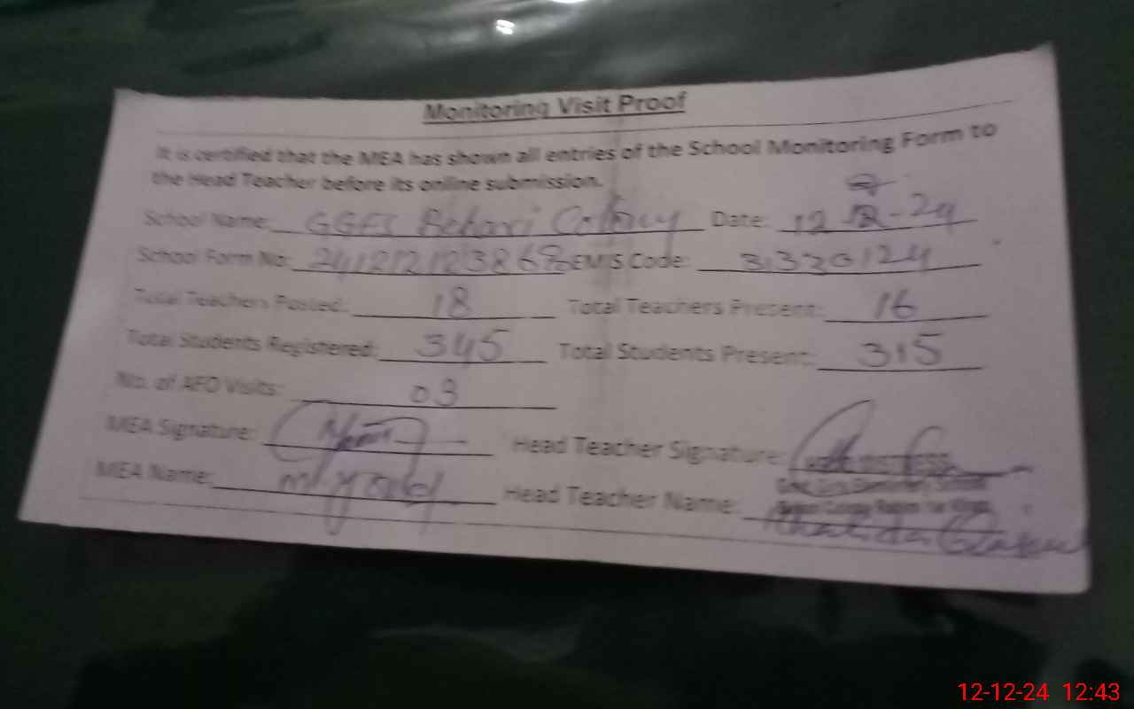 | EMIS Code: 31330124 | Name of School: GGES BEHARI COLONY | |||