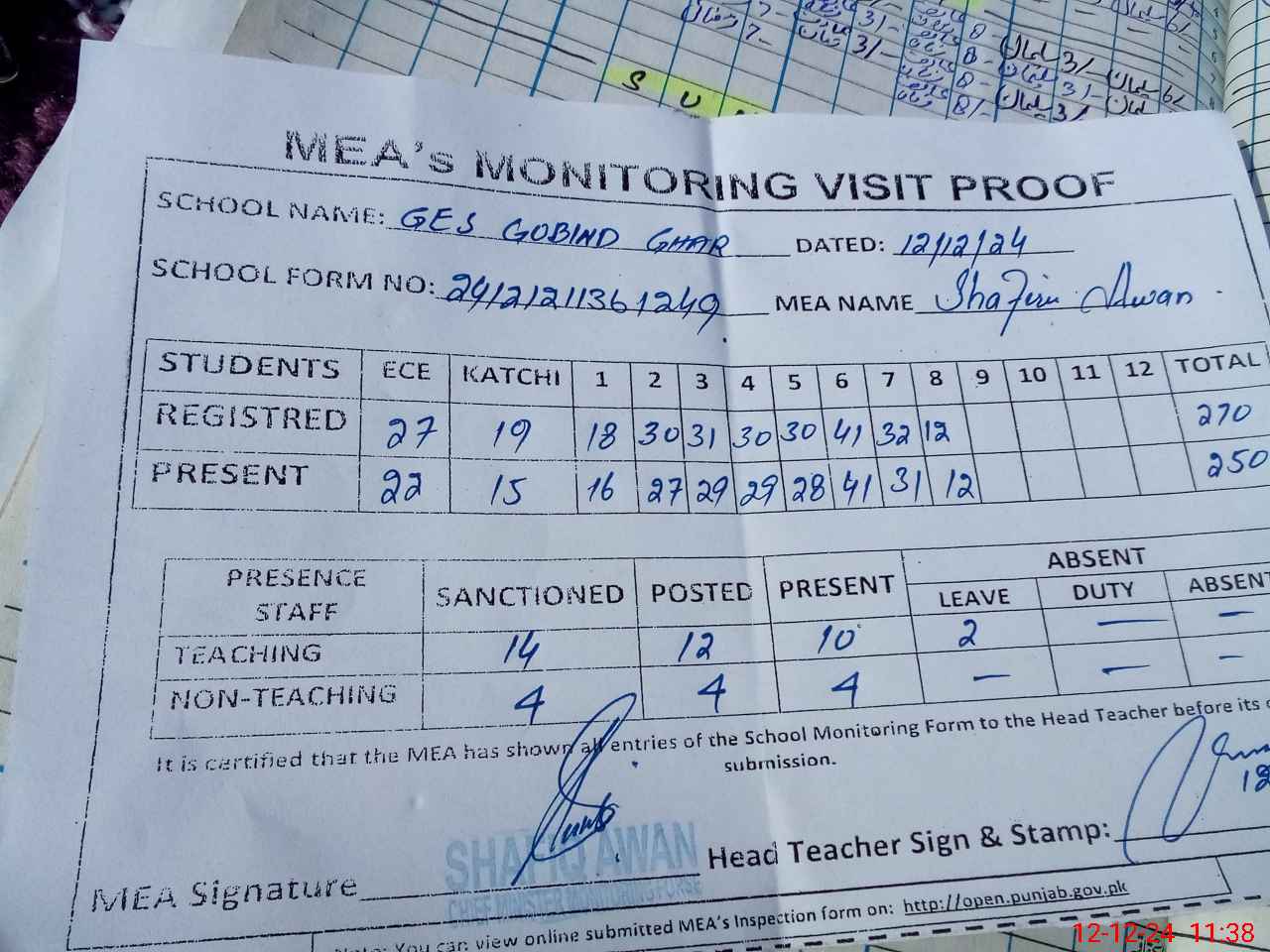 | EMIS Code: 36410081 | Name of School: GES GOBIND GARH, ABDUL HAKIM | |||