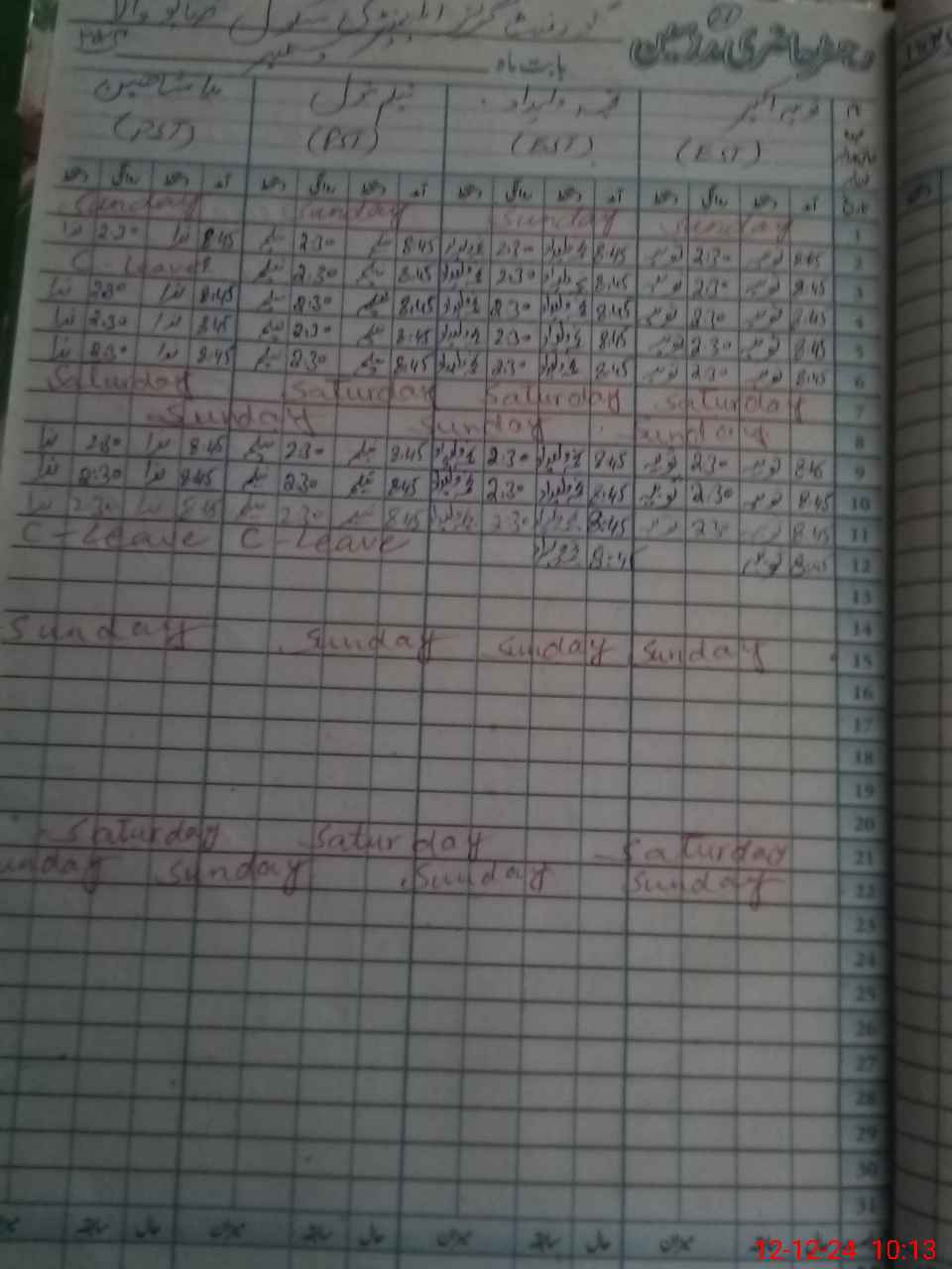 | 33**** | Ni**** Sh**** | PST | Regular | 0 | 0 | 0 | 0 | 0 | 0 | 0 | 0 | 0 | Casual |