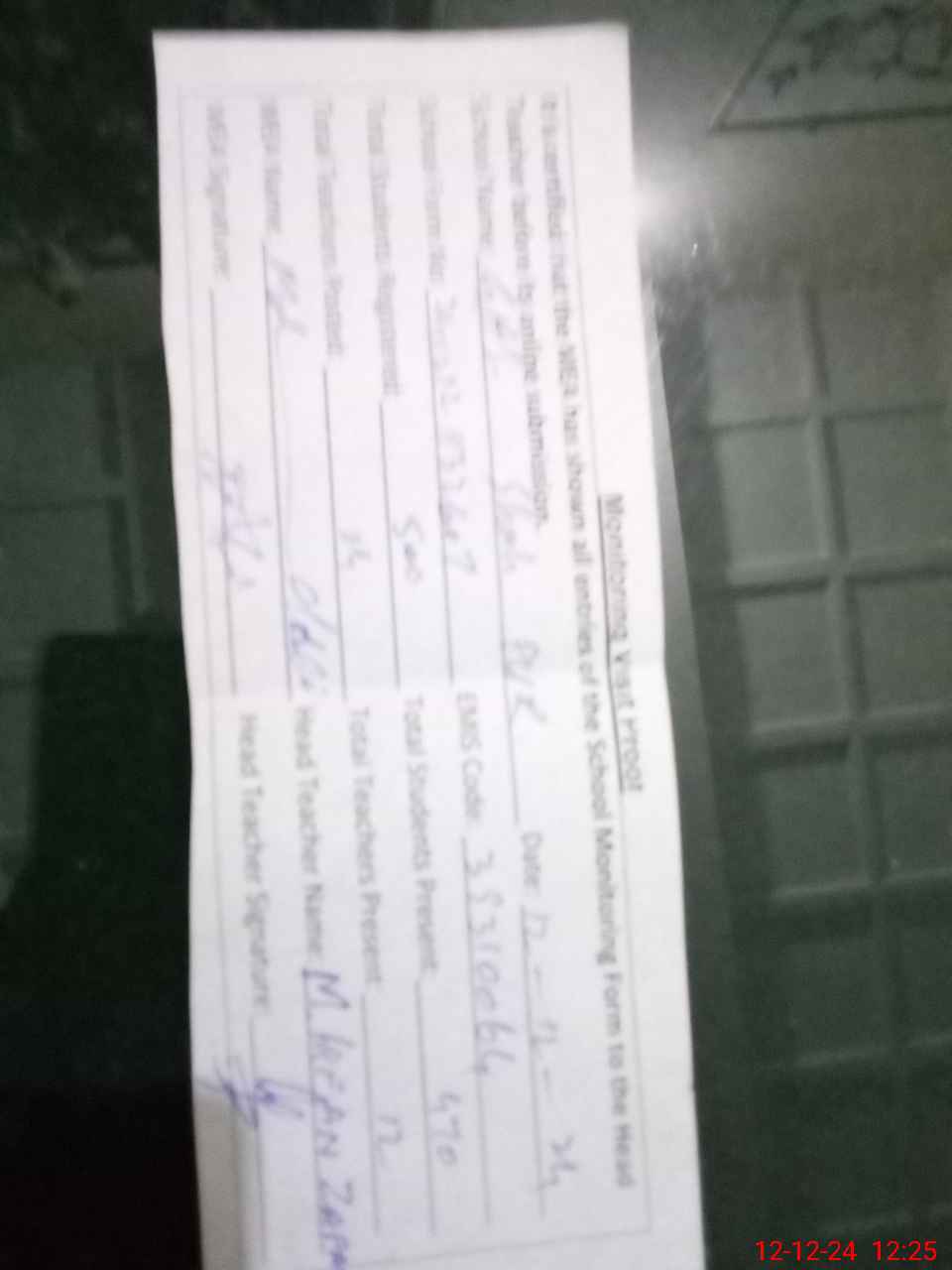 | Attendance Register | Head Teacher | MEA with School | Visit Proof |