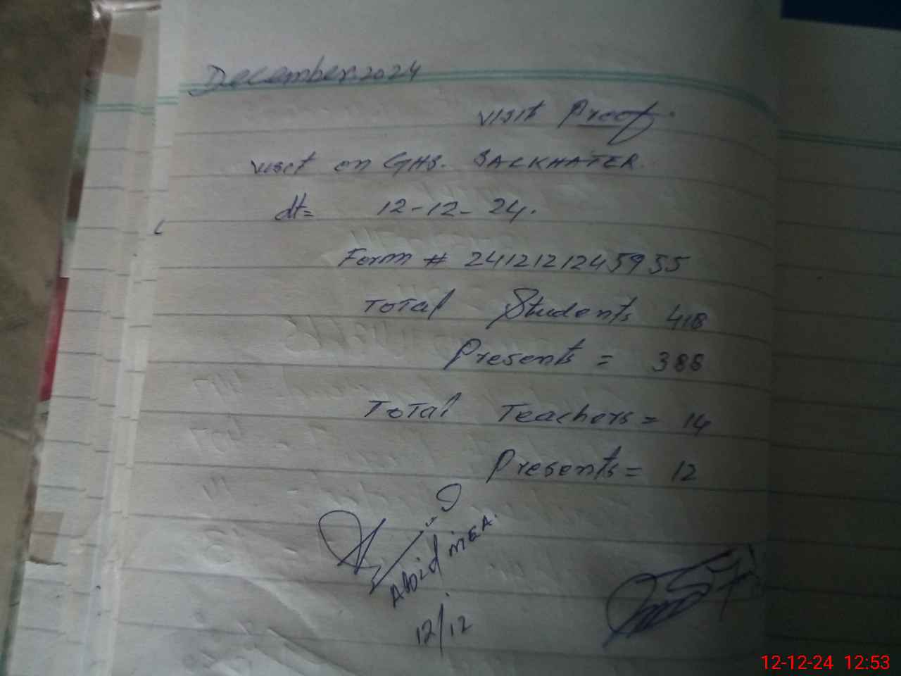 | Attendance Register | Head Teacher | MEA with School | Visit Proof |