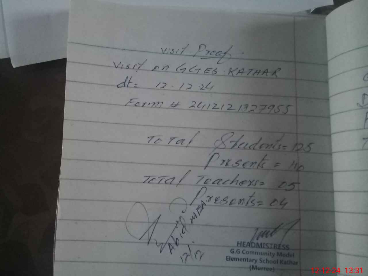| Attendance Register | Head Teacher | MEA with School | Visit Proof |