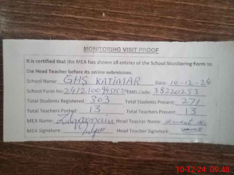 | EMIS Code: 38220253 | Name of School: GHS KATIMAR | |||