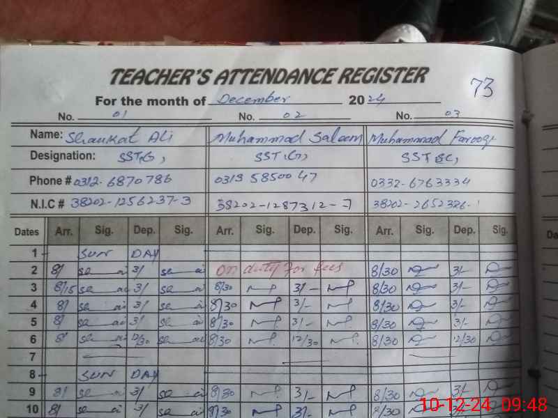 | Name: Sh**** Al**** Designation: (School Headmaster's/Headmistress's) SST G Phone/Cell Number: 03**** |