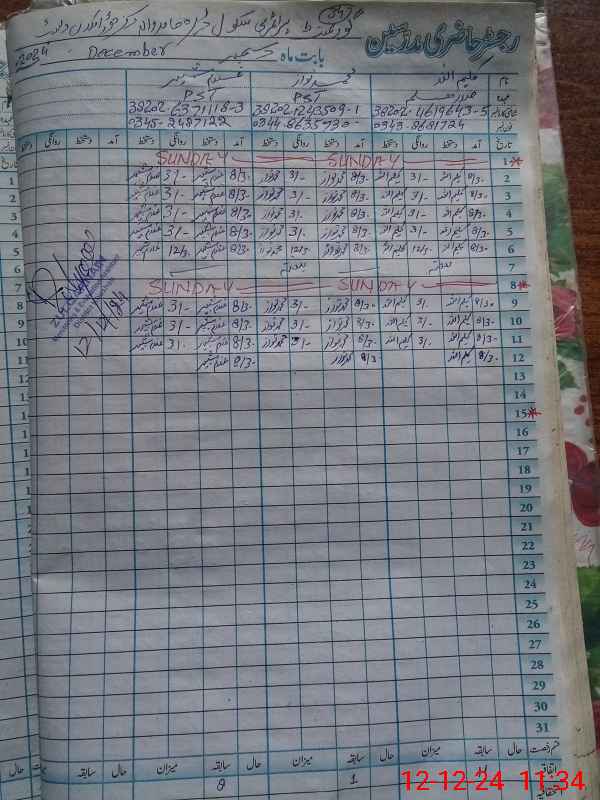 | CNIC | Full Name | Designation | R/C | Absence During Last Calender Month |