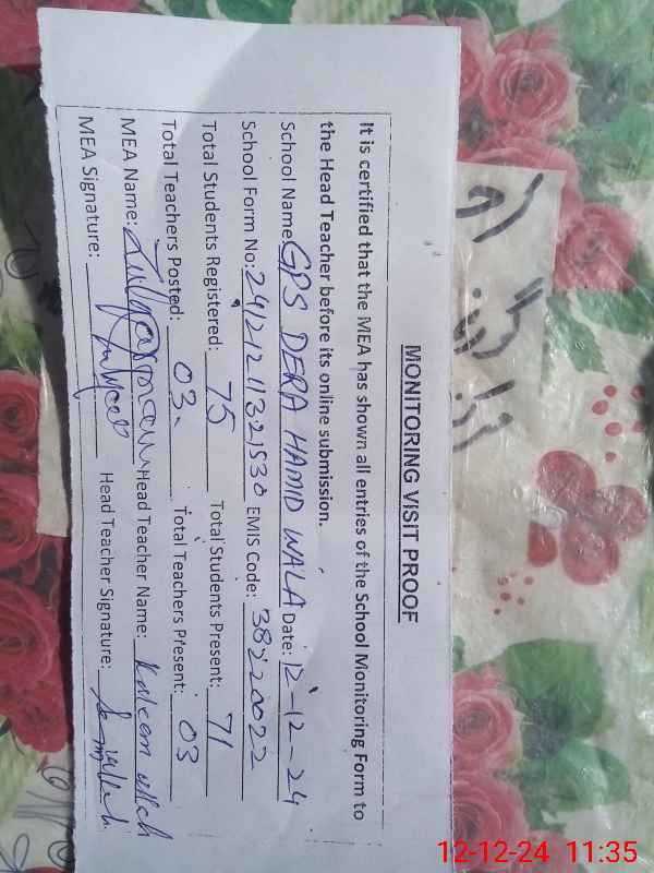 | EMIS Code: 38220022 | Name of School: GPS DERA HAMID WALA | |||