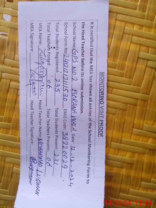 | EMIS Code: 38220029 | Name of School: GPS NO 2 BORANAWALA | |||