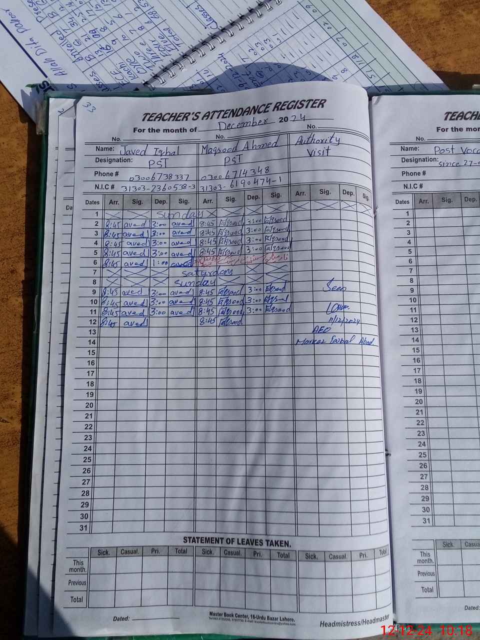 | Name: JA**** IQ**** Designation: (School Headmaster's/Headmistress's) PST/PTC/JV Phone/Cell Number: 03**** |