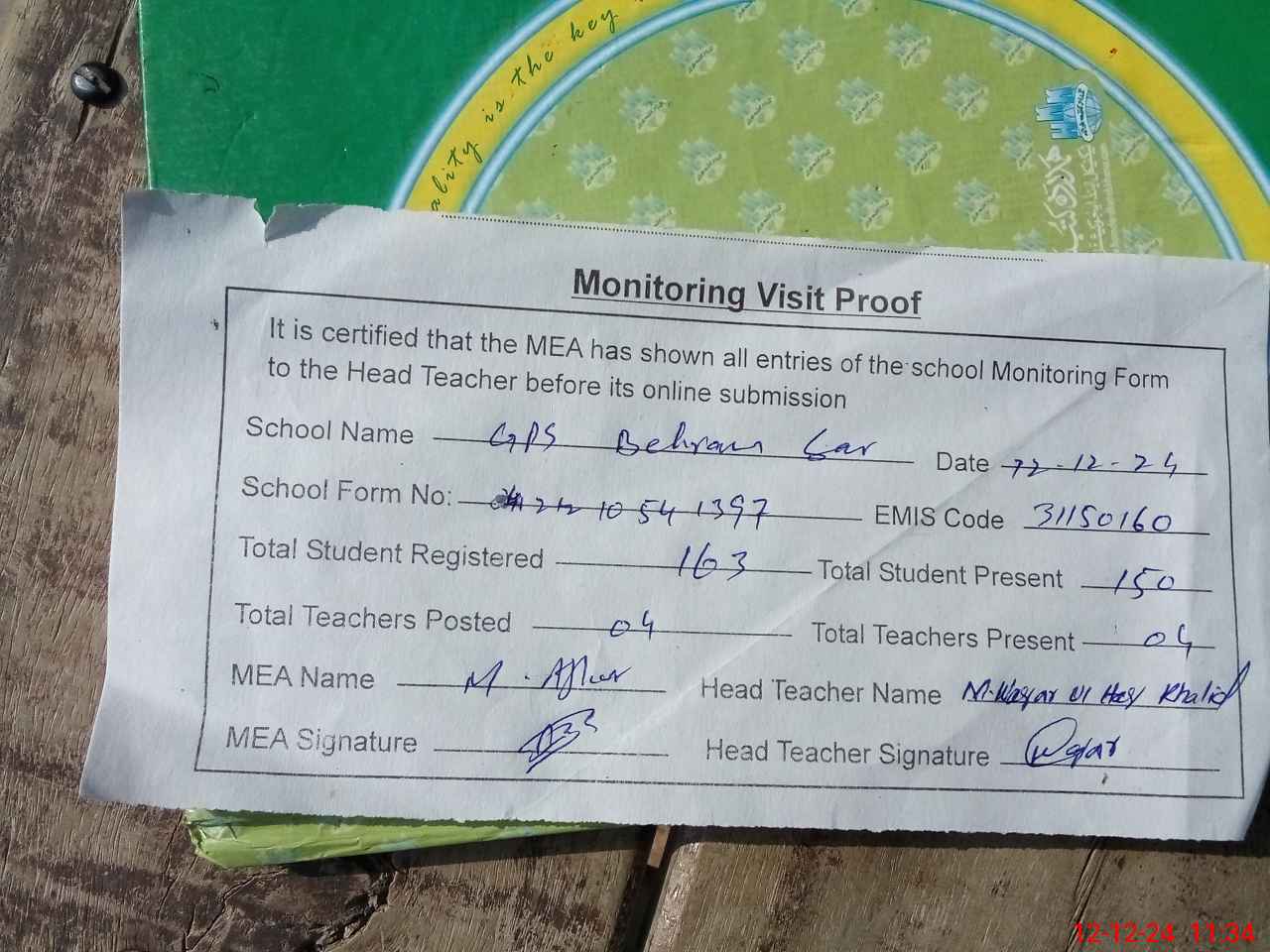 | EMIS Code: 31150160 | Name of School: GPS BEHRAAM SAR | |||