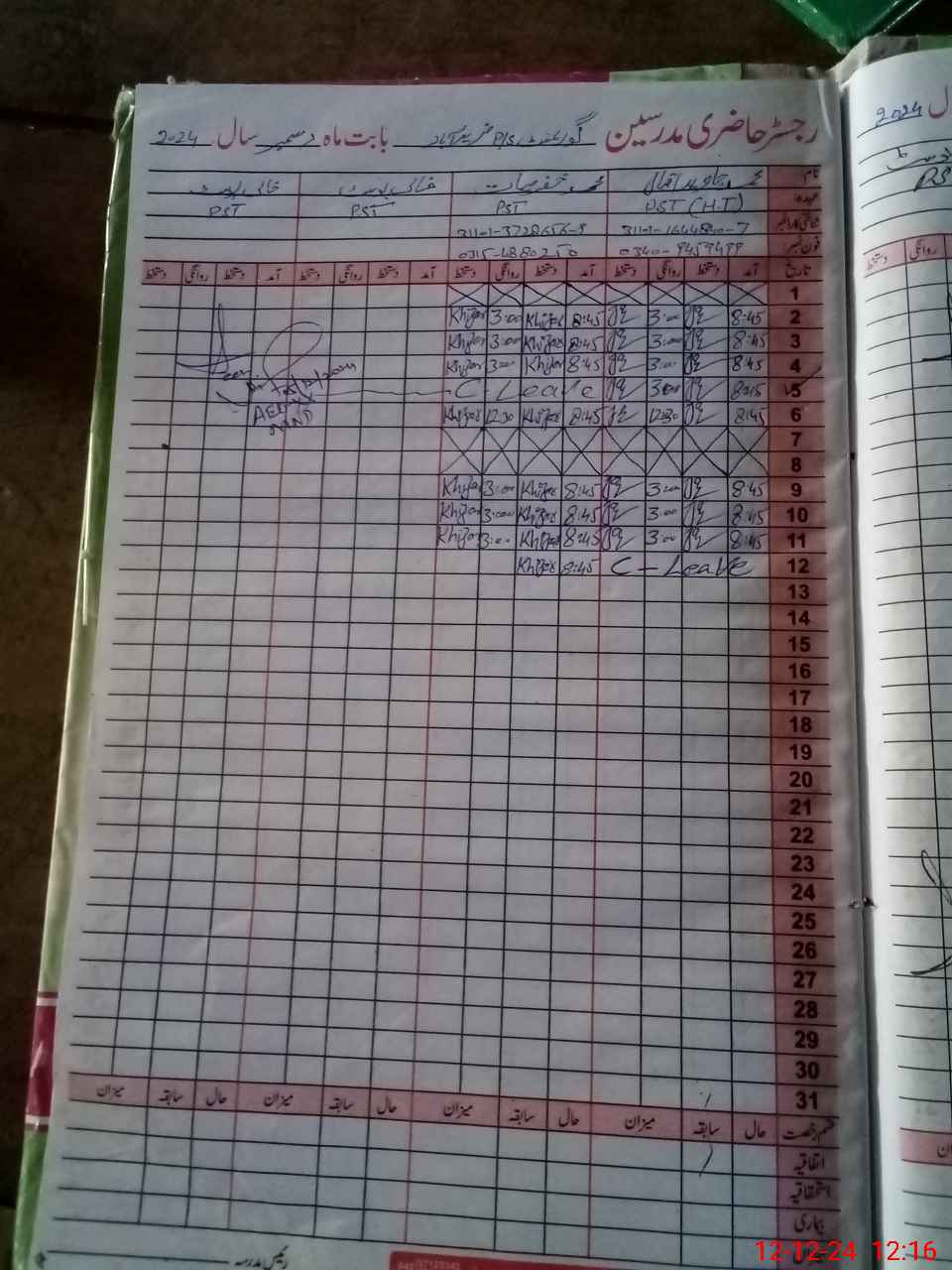 | 31**** | Mu**** Ja**** Iq**** | PST | Regular | 0 | 0 | 0 | 0 | 0 | 0 | 0 | 0 | 0 | Absent (Un-Authorized) |