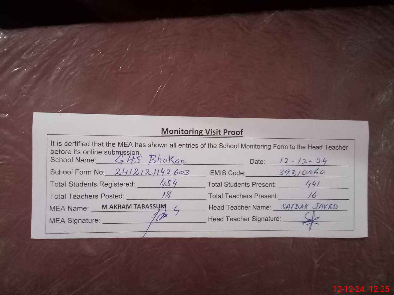 | EMIS Code: 39310060 | Name of School: GHS BHOKAN | |||