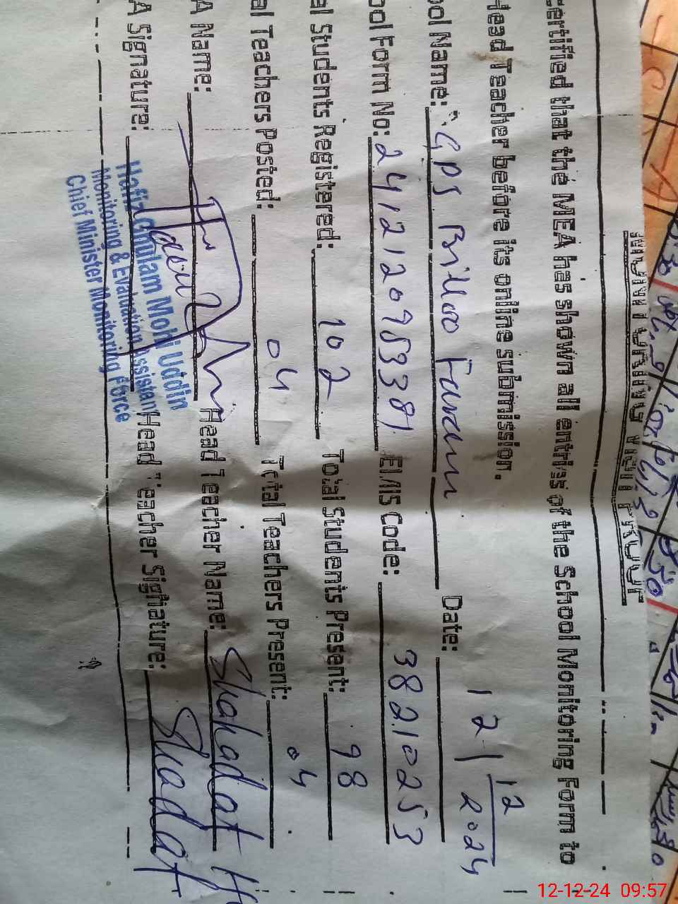 | EMIS Code: 38210253 | Name of School: GPS BILOO FARM | |||