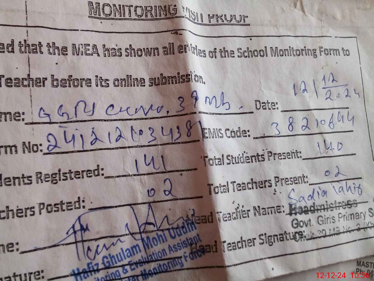 | EMIS Code: 38210644 | Name of School: GGPS NO. 2 CHAK NO. 39 MB | |||