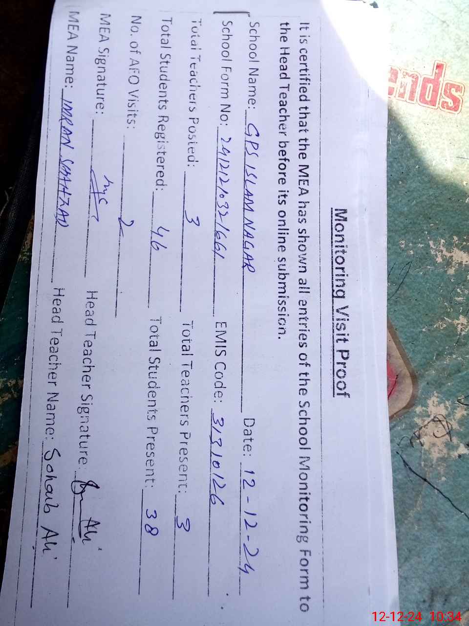| EMIS Code: 31310126 | Name of School: GPS ISLAM NAGAR | |||