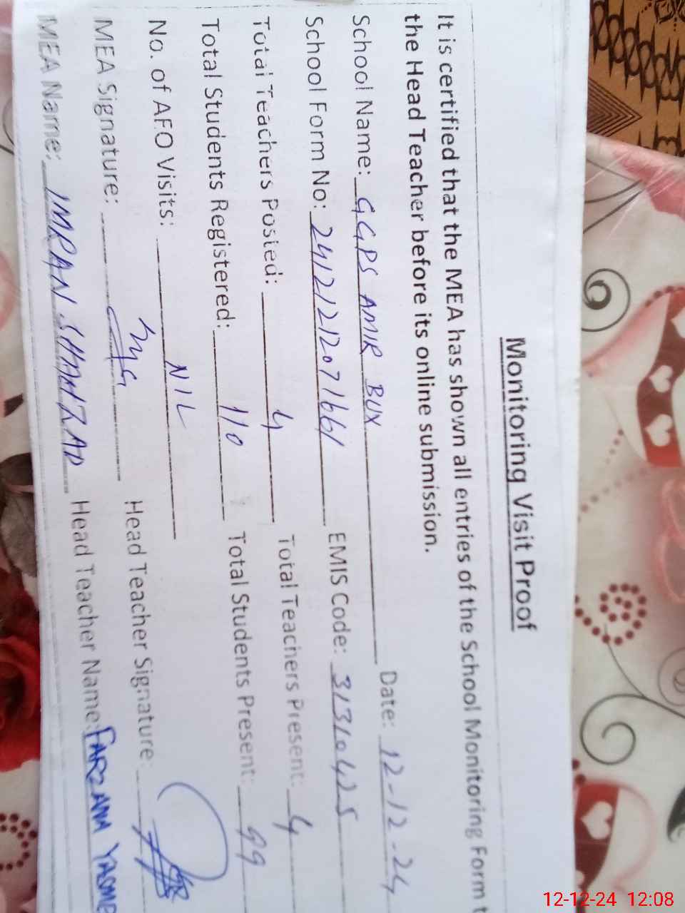 | EMIS Code: 31310425 | Name of School: GGPS AMIR BUKHSH | |||
