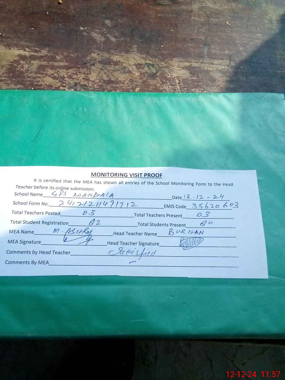 | EMIS Code: 35620603 | Name of School: GPS MANDIALA CHAK NO 20 RB | |||