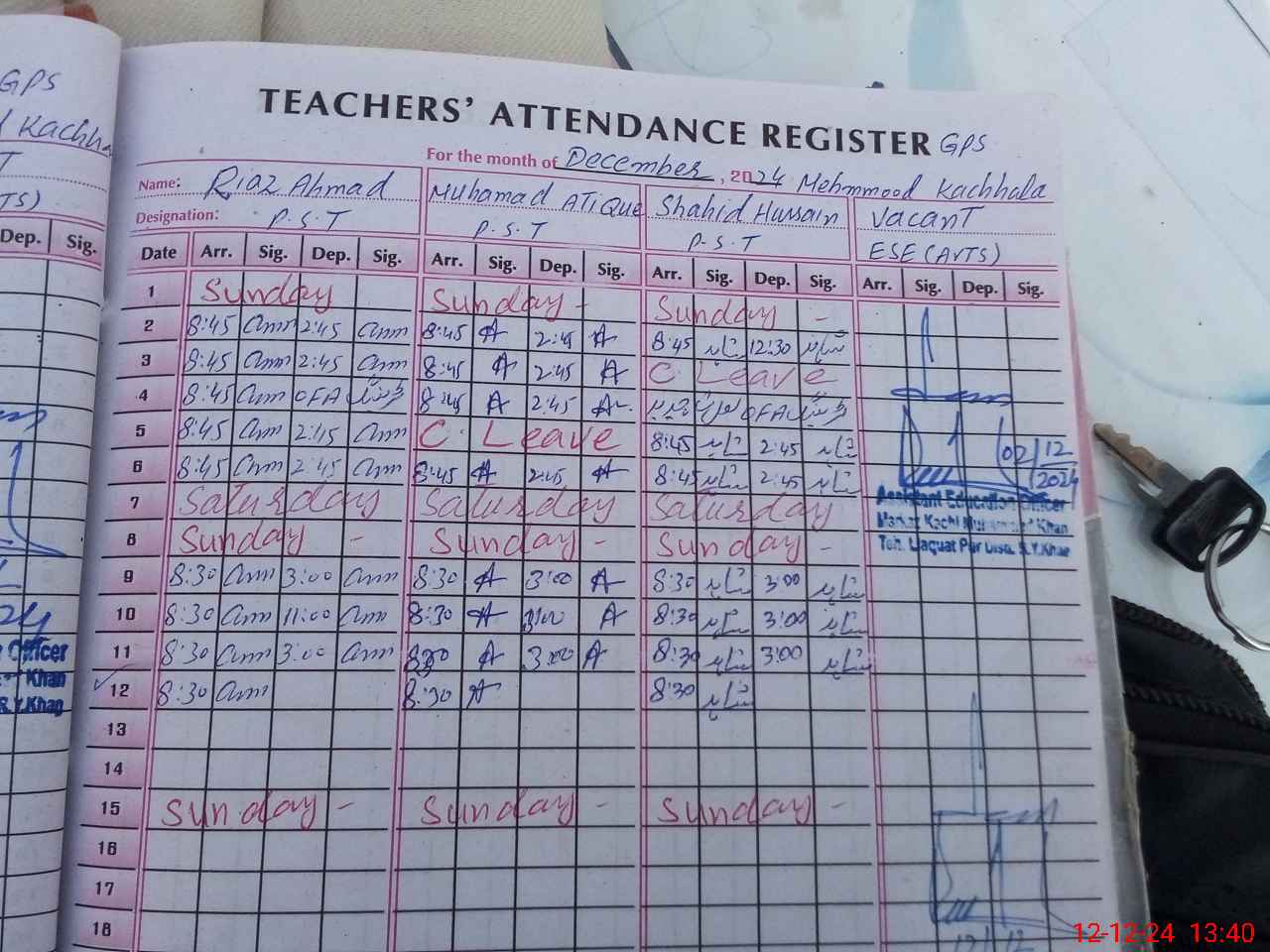 | Name: RI**** AH**** Designation: (School Headmaster's/Headmistress's) Pst Phone/Cell Number: 03**** |