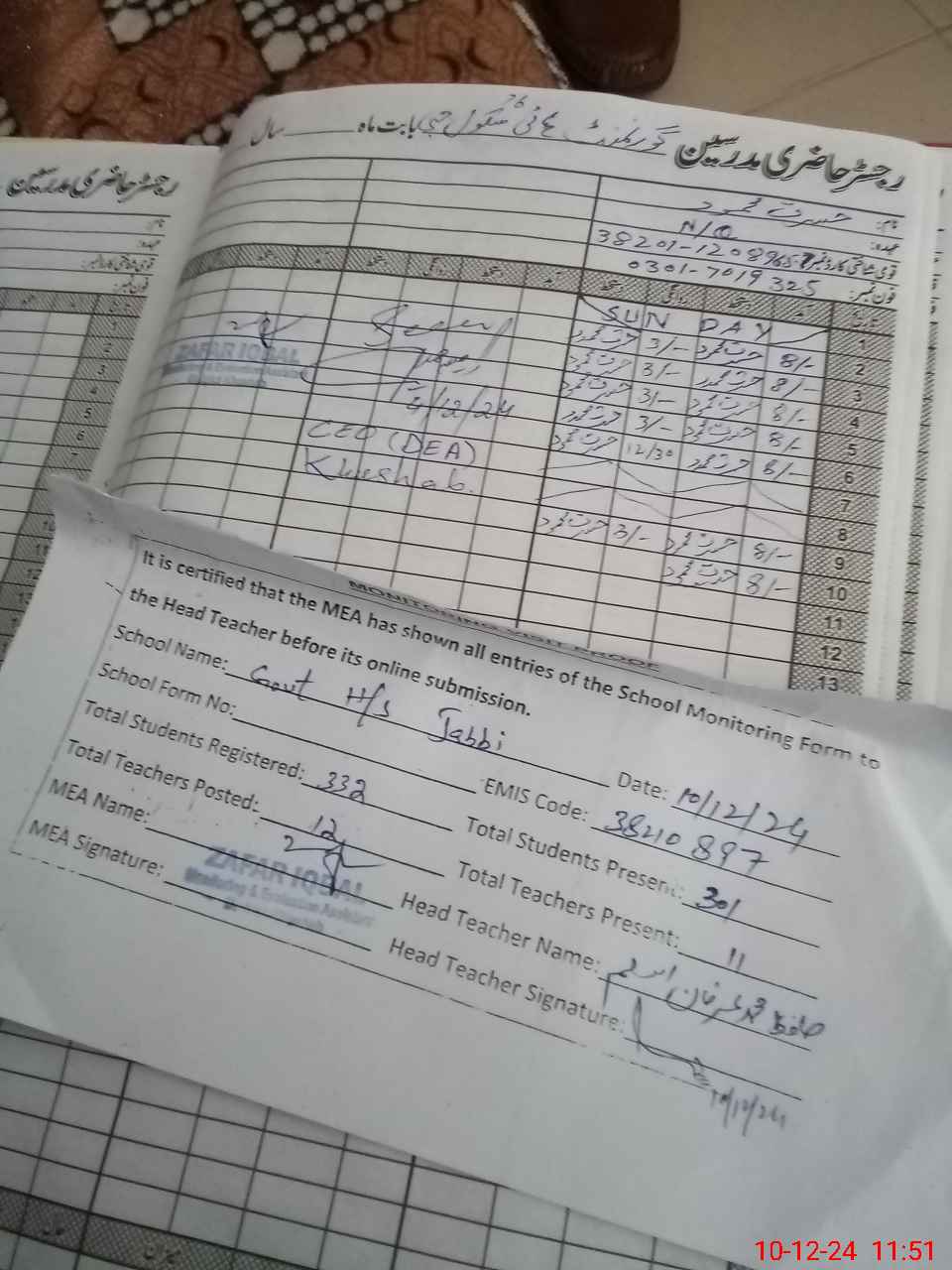 | EMIS Code: 38210897 | Name of School: GHS JABBI | |||