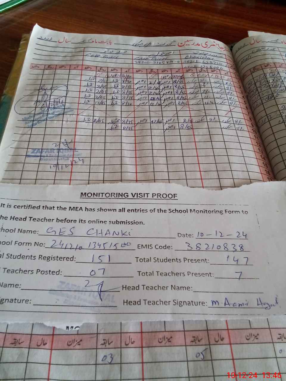 | Certified that this School was Inspected by the Undersigned MEA/DMO Today and the Information Stated Above is as Per Record. | |||||
