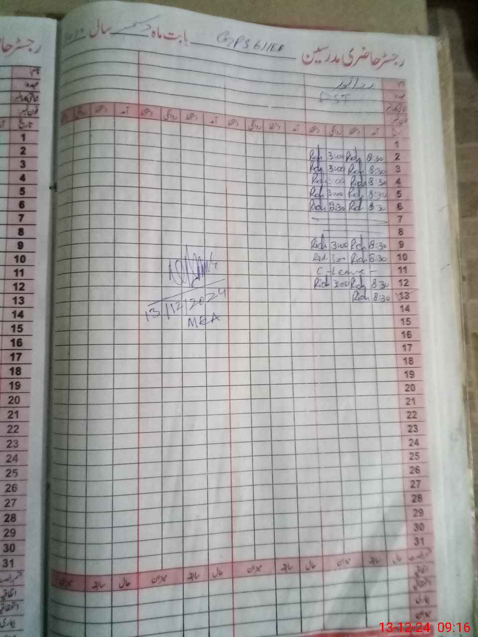 | CNIC | Full Name | Designation | R/C | Absence During Last Calender Month |