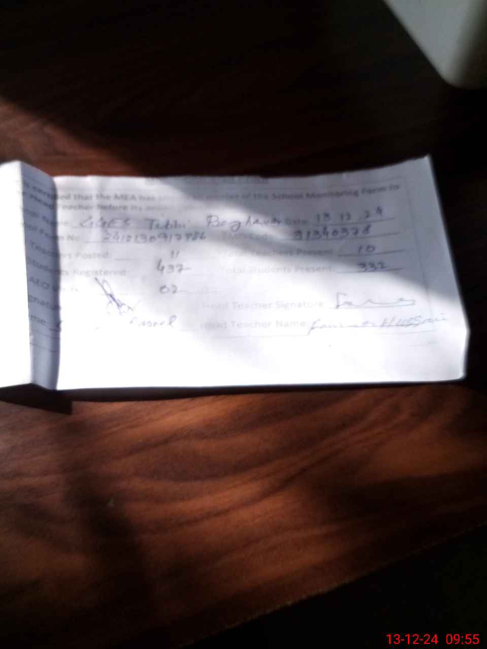 | Name: UZ**** IS**** Designation: (School Headmaster's/Headmistress's) S.S.T.(general Phone/Cell Number: 03**** |